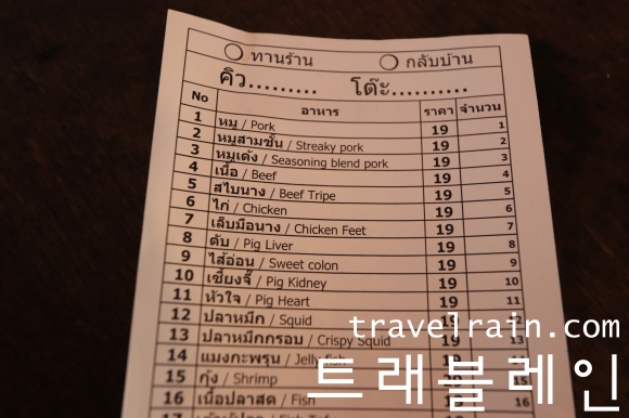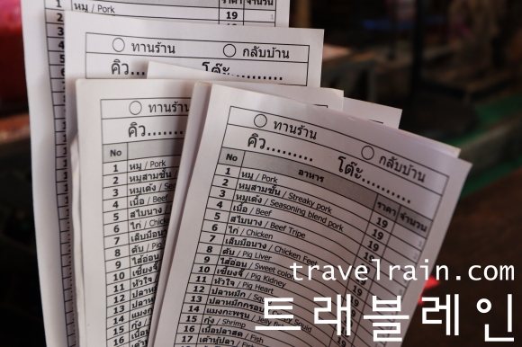 주문 용지에 원하는 것들을 체크해 직원에게 건네면 된다.