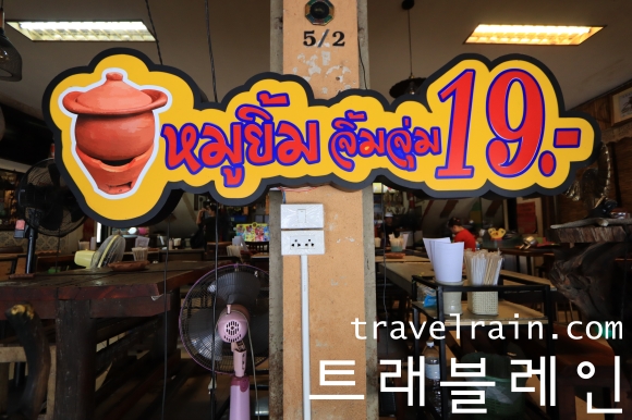 고기 종류는 한 접시에 19밧, 채소와 당면(운쎈)은 한 접시에 10밧을 받는다.
