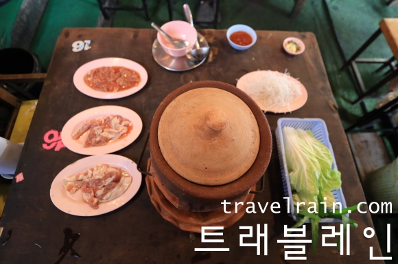 자그마한 토기 항아리에 음식 재료를 넣어서 익혀 먹으면 된다.