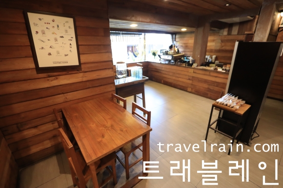 카페 규모는 작은 편. 에어컨 시설의 실내와 야외 테라스로 구분된다.