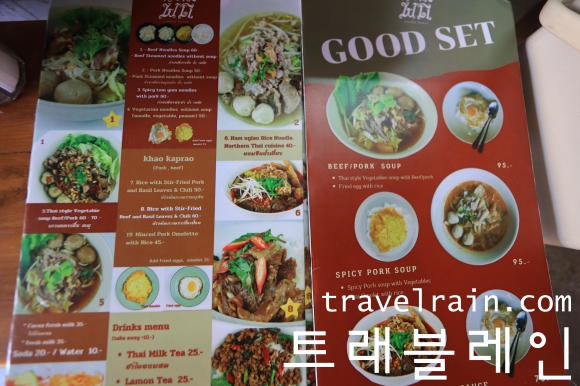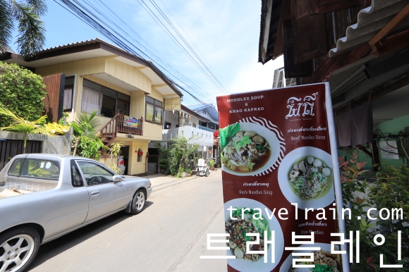 누들 수프 Noodle Soup & 카우 까프라우 Khao Kaprao라고 적힌 간판에서 알 수 있듯