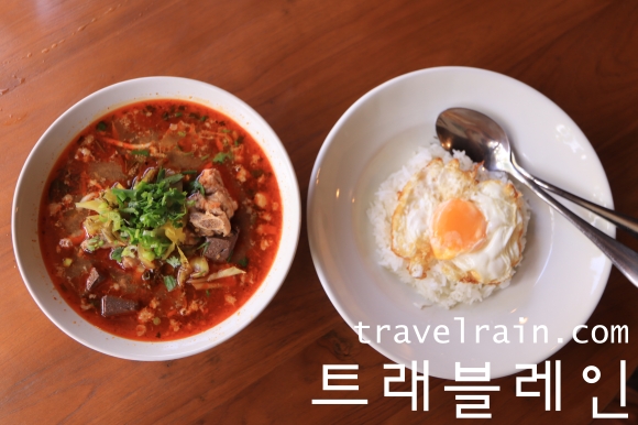 밥과 달걀 프라이를 곁들인 세트 메뉴를 주문해도 된다.