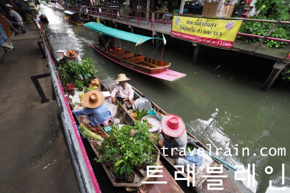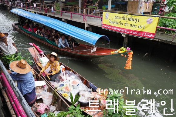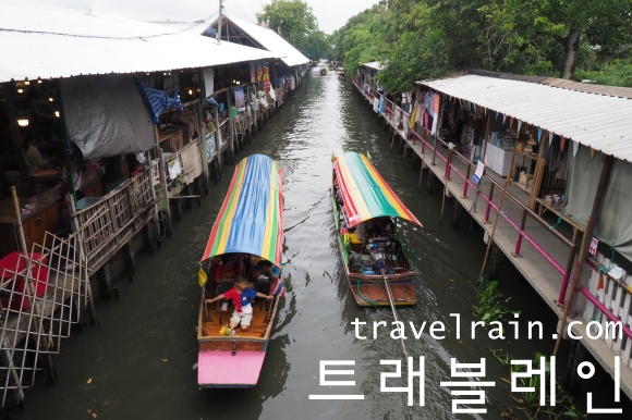 수상시장이긴 하지만 강이 아니라 운하 옆에 형성된 시장이다.