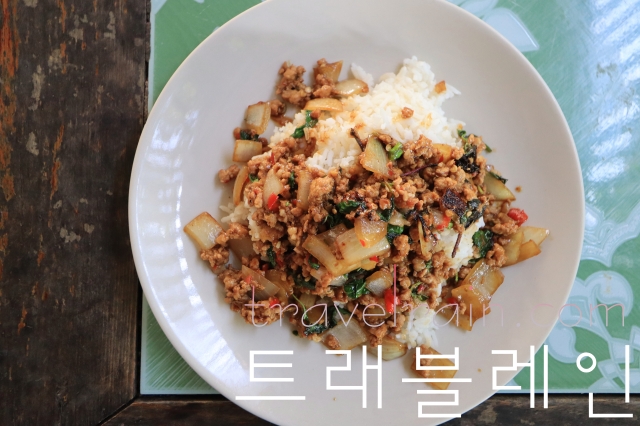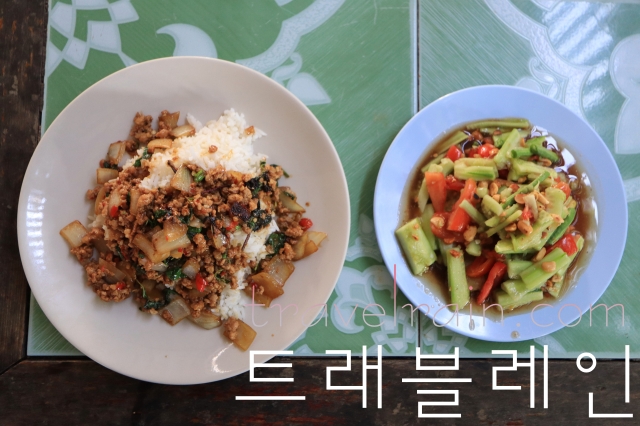 #다진 돼지고기 바질 볶음 덮밥과 오이 쏨땀을 시켜봤다