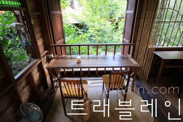 #목조 건물 2층 창문 밖 풍경
